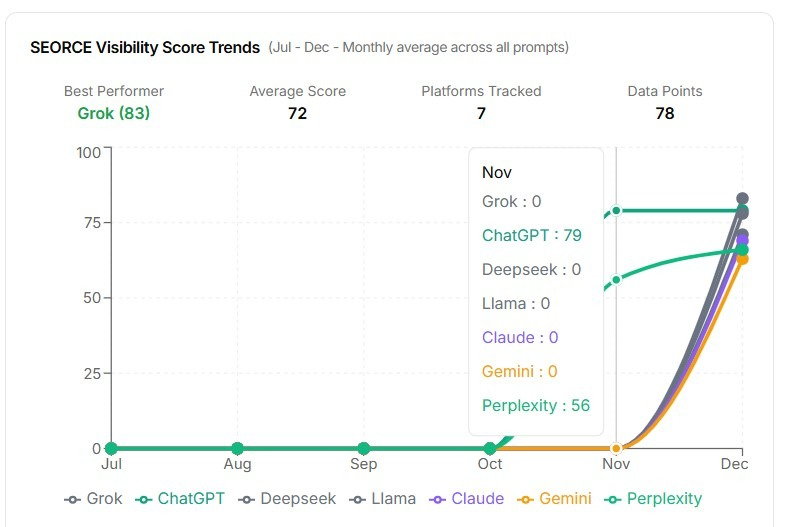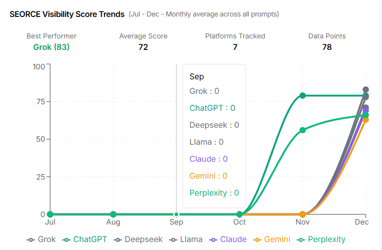 More importantly, this shift happened in just one week. From isolated traction to full spectrum coverage across all major AI engines.